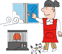 ●石油ストーブやカセットこんろなどを閉めきった場所で長時間使用すると一酸化炭素中毒をひきおこす危険があります。定期的に窓を開けるなど十分に換気をしましょう。